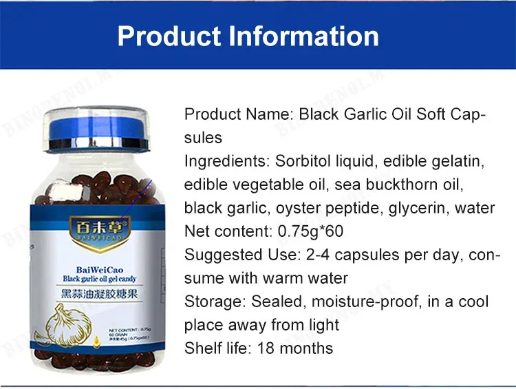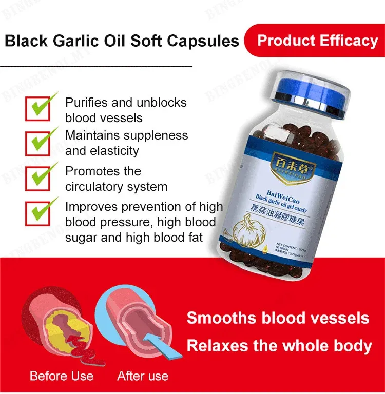 - 1. Indulge in the sweetness of our black garlic oil candy, a traditional supplement for adults and seniors that promotes anti-aging and antioxidant benefits.